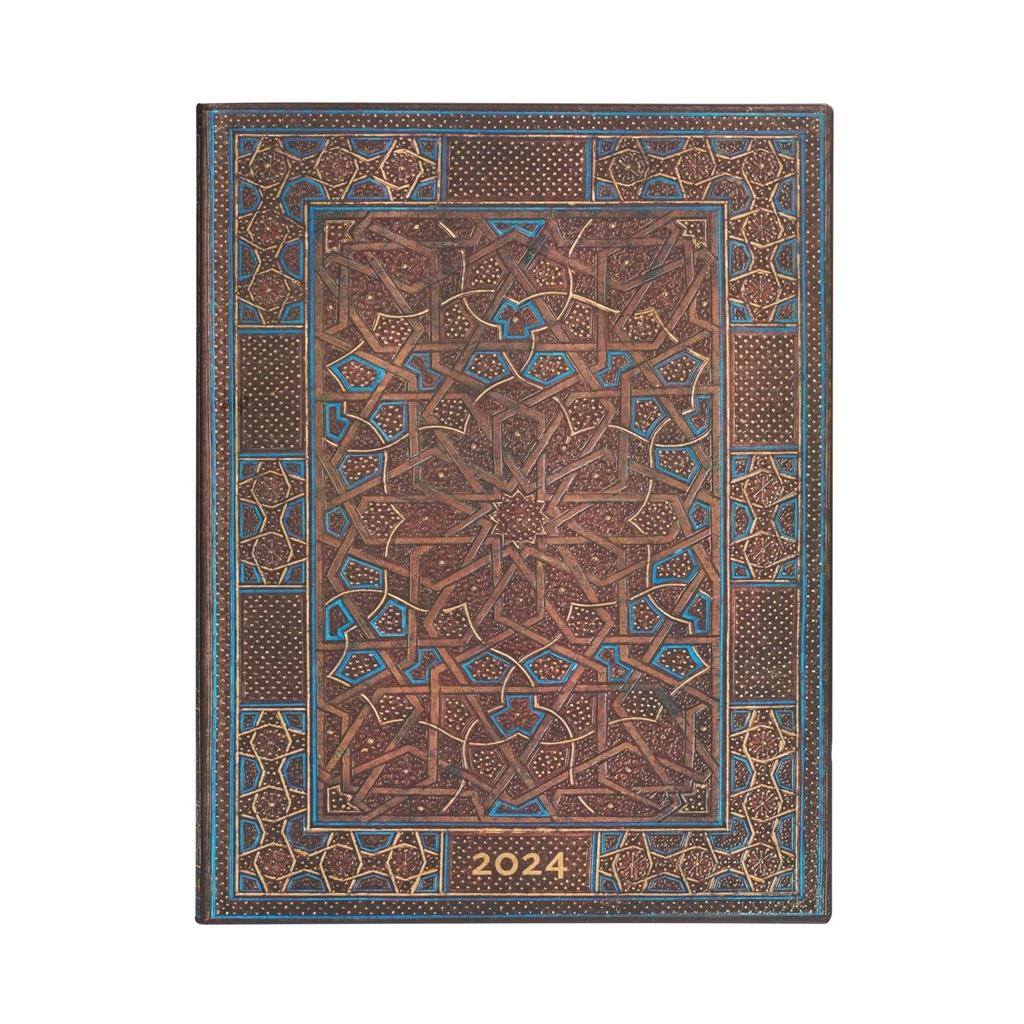 • Kalendarz ekskluzywnej marki Paperblanks. • Format Ultra typu Vertical - cały tydzień rozplanowany jest na 2 stronach z podziałką godzinową. • Elastyczna oprawa i grzbiet. • Kalendarium w języku angielskim. • W środku miejsce na notatki, roczny planer, oznaczone wybrane święta międzynarodowe, mini kalendarium, międzynarodowe numery telefonów, strefy czasowe oraz mini skorowidz na adresy i telefony. • Kalendarz posiada 2 satynowe wstążki jako zakładki. • Na końcu po wewnętrznej stronie okładki jest koperta na drobne notatki, wizytówki czy paragony. • Papier ekologiczny, bezkwasowy, gramatura 100. • Wymiary 18 x 23 cm. • 176 stron.
