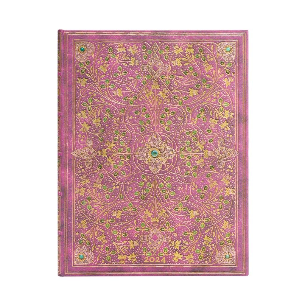 • Kalendarz ekskluzywnej marki Paperblanks. • Format Ultra typu Vertical - cały tydzień rozplanowany jest na 2 stronach z podziałką godzinową. • Oprawa twarda. • Kalendarium w języku angielskim. • W środku miejsce na notatki, roczny planer, oznaczone wybrane święta międzynarodowe, mini kalendarium, międzynarodowe numery telefonów, strefy czasowe. • Kalendarz posiada 2 satynowe wstążki jako zakładki. • Na końcu po wewnętrznej stronie okładki jest koperta na drobne notatki, wizytówki czy paragony oraz oraz mini skorowidz na adresy i telefony. • Papier ekologiczny, bezkwasowy, gramatura 100. • Zamknięcie na gumkę. • Wymiary 23 x 18 cm. • 160 stron.