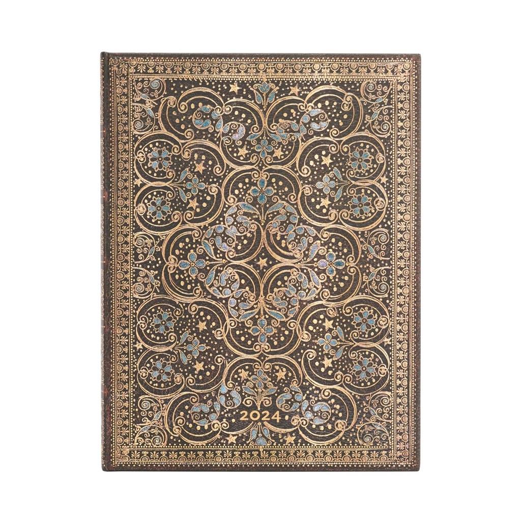 • Kalendarz ekskluzywnej marki Paperblanks. • Format Ultra typu Horizontal - cały tydzień rozplanowany na 2 stronach. • Oprawa twarda. • Kalendarium w języku angielskim. • W środku miejsce na notatki, roczny planer, oznaczone wybrane święta międzynarodowe, mini kalendarium, międzynarodowe numery telefonów, strefy czasowe. • Kalendarz posiada 2 satynowe wstążki jako zakładki. • Na końcu po wewnętrznej stronie okładki jest koperta na drobne notatki, wizytówki czy paragony oraz oraz mini skorowidz na adresy i telefony. • Papier ekologiczny, bezkwasowy, gramatura 100. • Zamknięcie na gumkę. • Wymiary 23 x 18 cm. • 160 stron.