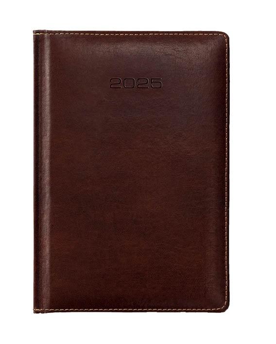 Kalendarz posiada: skrócone 3-letnie kalendarium, planer roczny, kalendarium dzienne (PL,GB,D) z układem skróconego rocznego, stronę na notatki, mapę Polski, bloki szyte nićmi, dwa kolory druku (szary-burgund), wstążkę w kolorze okleiny. Oprawa na tekturze z gąbką umożliwia wykonanie tłoczenia matrycą (bez efektu przebarwienia/ciemnienia materiału), personalizacji laserowej i nadruków.