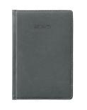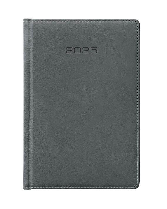 Kalendarze książkowe przeszywane Układ dzienny Kalendarz posiada przejrzysty układ kalendarium, rozbudowaną część informacyjną oraz kolorowe mapy Polski i Europy. Bloki szyte nićmi, dwa kolory druku (szary-burgund). Przeszywana, skóropodobna okleina na tekturze z gąbką umożliwia wykonanie nadruków, głębokiego - termoprzebarwialnego tłoczenia i personalizacji laserowej kalendarza. Posiada perforację narożników i wstążkę w kolorze zharmonizowanym z kolorem okleiny.