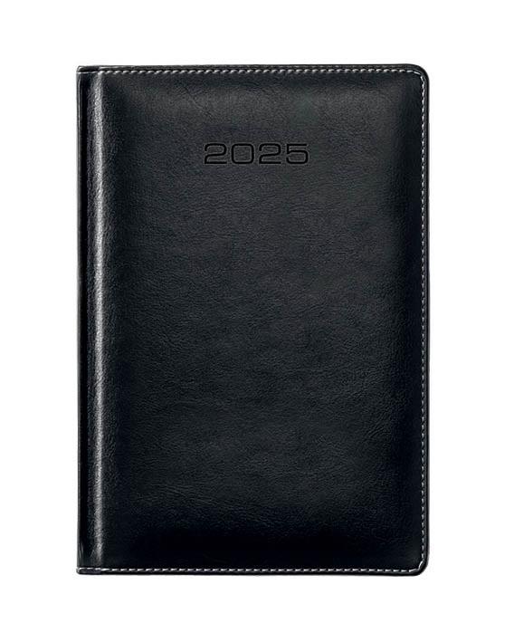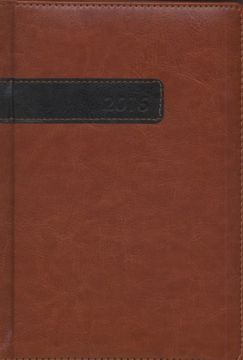 Kalendarz posiada przejrzysty układ kalendarium, rozbudowaną część informacyjną oraz kolorowe mapy Polski i Europy. Bloki szyte nićmi, dwa kolory druku (szary-burgund). Przeszywana, skóropodobna okleina na tekturze z gąbką umożliwia wykonanie nadruków, głębokiego - termoprzebarwialnego tłoczenia i personalizacji laserowej kalendarza. Posiada perforację narożników i wstążkę w kolorze zharmonizowanym z kolorem okleiny.