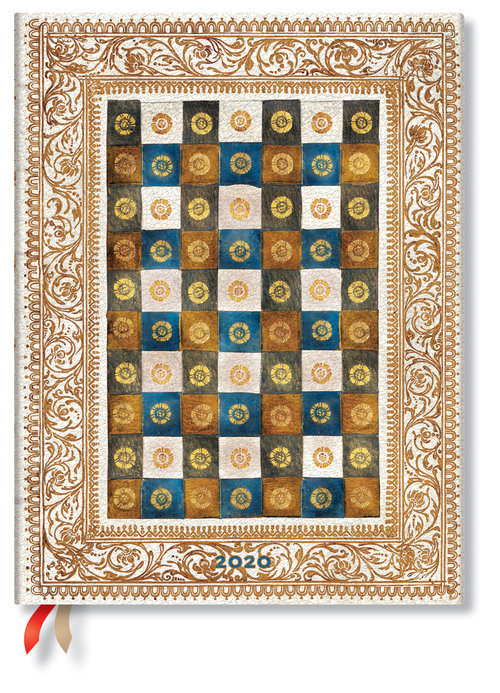 Kalendarz ekskluzywnej marki Paperblanks. Format Ultra typu Horizontal - kalendarz tygodniowy czyli tydzień na 2 stronach. W środku 2 wstążki jako zakładki, koperta na drobne notatki, oraz mini skorowidz na adresy. Oprawa twarda. Zamknięcie na gumkę. Wymiar 180 x 230 mm. Ilość stron 160.