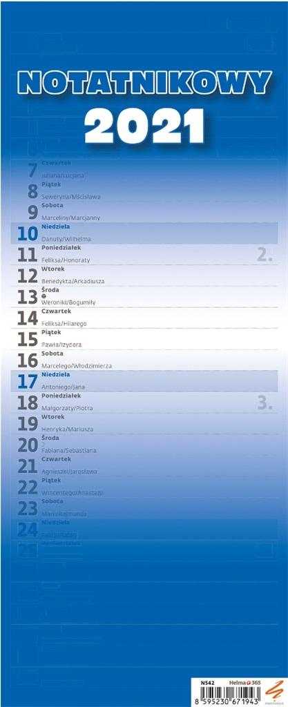 Kalendarz 2021 Slim notatnikowy niebieski HELMA
