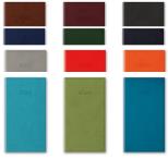 Kalendarz w układzie tygodniowym, czyli cały tydzień rozmieszczony na dwóch sąsiadujących stronach, z polem do prowadzenia krótkich notatek przy każdym dniu. Format kieszonkowy A6 (blok: 8,5 x 15,3 cm), papier kremowy, druk szaro-bordowy, registry drukowane. Wstążka-zakładka; 128 stron; notes teleadresowy. Okleina skóropodobna.