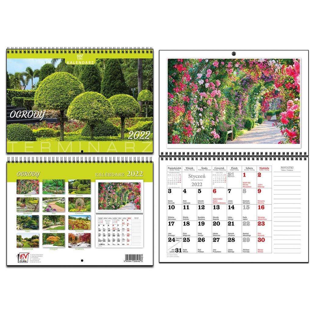 Kalendarz 2022 A4 terminarz 13 plansz Ogrody