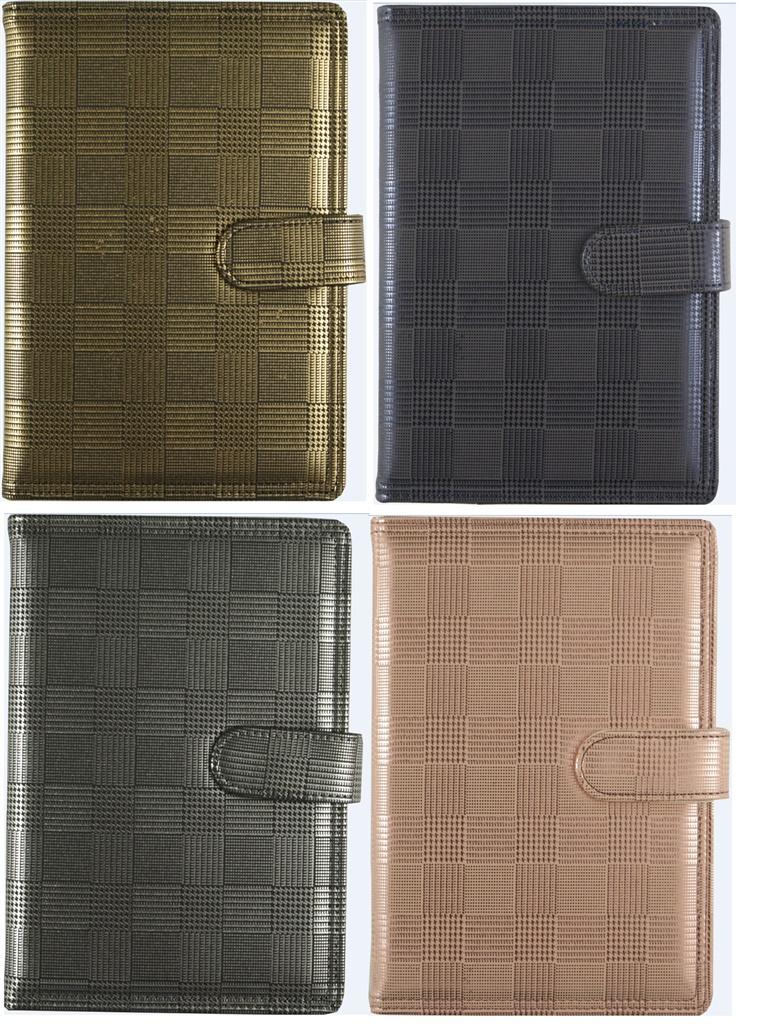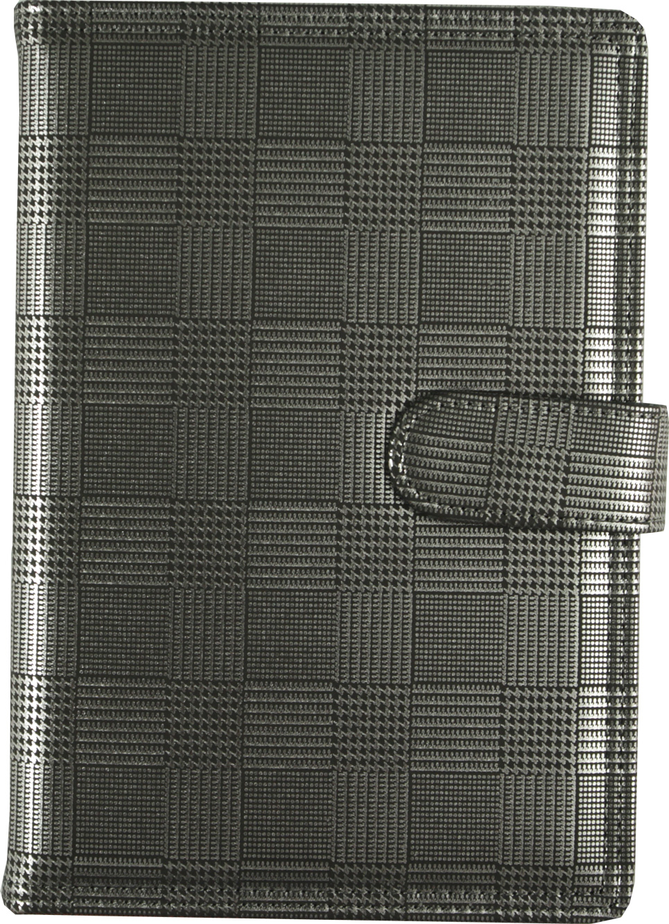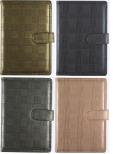 - kalendarz książkowy dzienny z zapięciem, twarda oprawa, format A5, rozkład: dzień na 1 stronie, wycięte registry, ilość kartek 352, papier chamois, druk dwukolorowy (czarno-czerwony), skrócone kalendarium roku poprzedniego, bieżącego i następnego, w dolnej części strony skrócone kalendarium miesięczne, notes, skorowidz tele-adresowy, miejsce na długopis, tasiemka, mapa