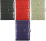 - kalendarz książkowy dzienny z zapięciem, twarda oprawa, format A5, rozkład: dzień na 1 stronie, wycięte registry, ilość kartek 352, papier chamois, druk dwukolorowy (czarno-czerwony), skrócone kalendarium roku poprzedniego, bieżącego i następnego, w dolnej części strony skrócone kalendarium miesięczne, notes, skorowidz tele-adresowy, miejsce na długopis, tasiemka, mapa