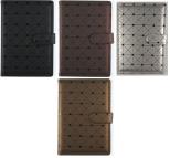 - kalendarz książkowy dzienny z zapięciem, twarda oprawa, format A5, rozkład: dzień na 1 stronie, wycięte registry, ilość kartek 352, papier chamois, druk dwukolorowy (czarno-czerwony), skrócone kalendarium roku poprzedniego, bieżącego i następnego, w dolnej części strony skrócone kalendarium miesięczne, notes, skorowidz tele-adresowy, miejsce na długopis, tasiemka, mapa