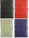 - kalendarz książkowy tygodniowy z zapięciem, twarda oprawa, format A5, rozkład: tydzień na 2 stronach, wycięte registry, ilość kartek 144, papier chamois, druk dwukolorowy (czarno-czerwony), skrócone kalendarium roku poprzedniego, bieżącego i następnego, w dolnej części strony skrócone kalendarium miesięczne, notes, skorowidz tele-adresowy, miejsce na długopis, tasiemka, mapa