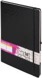 Format A4 oprawa: twarda materiał: ekskluzywna skóra ekologiczna papier: 80g kolor papieru: ecru pionowa gumka zamykająca gumka na długopis zaokrąglone rogi wyklejka z ozdobnego czarnego papieru koperta na luźne karteczki wstążka w kolorze okładki dodatkowe strony: skrócony kalendarz 2021-2023 plan roku 2022 ważne wydarzenia notatnik oraz skorowidz adresowy 144 strony Wymiary 297x210