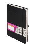 Format A5 oprawa: twarda materiał: ekskluzywna skóra ekologiczna papier: 80g kolor papieru: ecru pionowa gumka zamykająca gumka na długopis zaokrąglone rogi wyklejka z ozdobnego czarnego papieru koperta na luźne karteczki wstążka w kolorze okładki dodatkowe strony: skrócony kalendarz 2021-2023 plan roku 2022 ważne wydarzenia notatnik oraz skorowidz adresowy 352 strony 210x145 mm