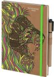 Format A5 oprawa: miękka materiał: surowce naturalne papier: 80g kolor papieru: ecru pionowa gumka zamykająca zaokrąglone rogi wyklejka z ozdobnego kremowego papieru koperta na luźne karteczki wstążka w kolorze okładki dodatkowe strony: skrócony kalendarz 2021-2023 plan roku 2022 ważne wydarzenia notatnik oraz skorowidz adresowy 144 strony 141x207 mm
