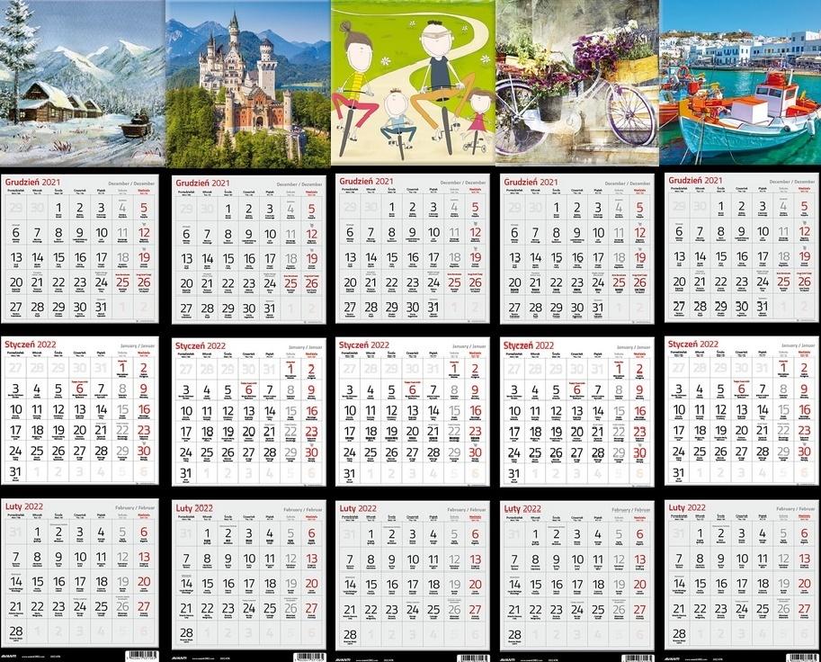 Opakowanie Kalendarz 2022 KTK-M Trójdzielny Kwadratowy MIX