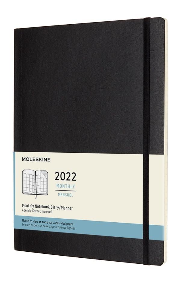 Kalendarz miesięczny Moleskine 2022 12M XL, miękka oprawa, czarny