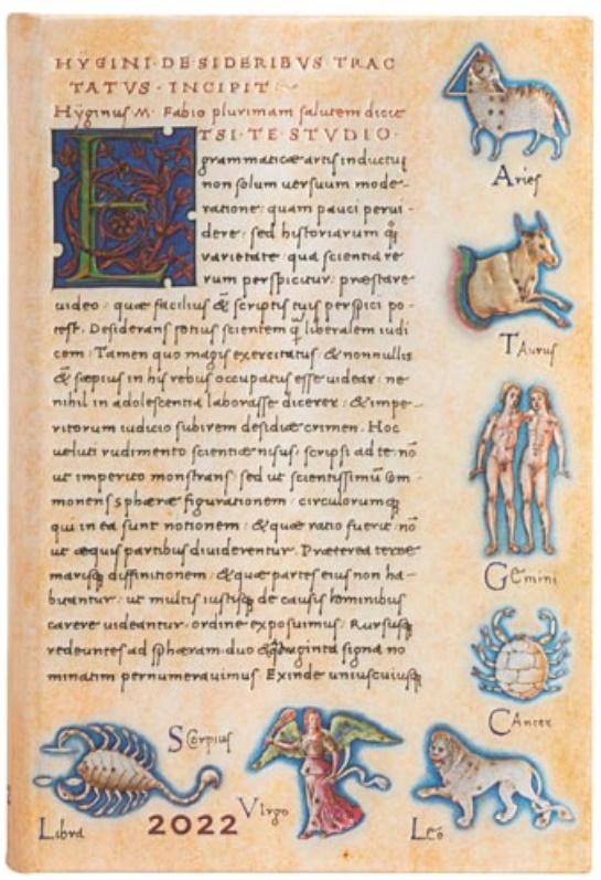 Wzór na okładce odtwarza oprawę De sideribus tractatus, który jest XV-wieczną kopią rekopisu De astronomica z konca I wieku napisanego przez Gajusza Juliusza Hyginusa.