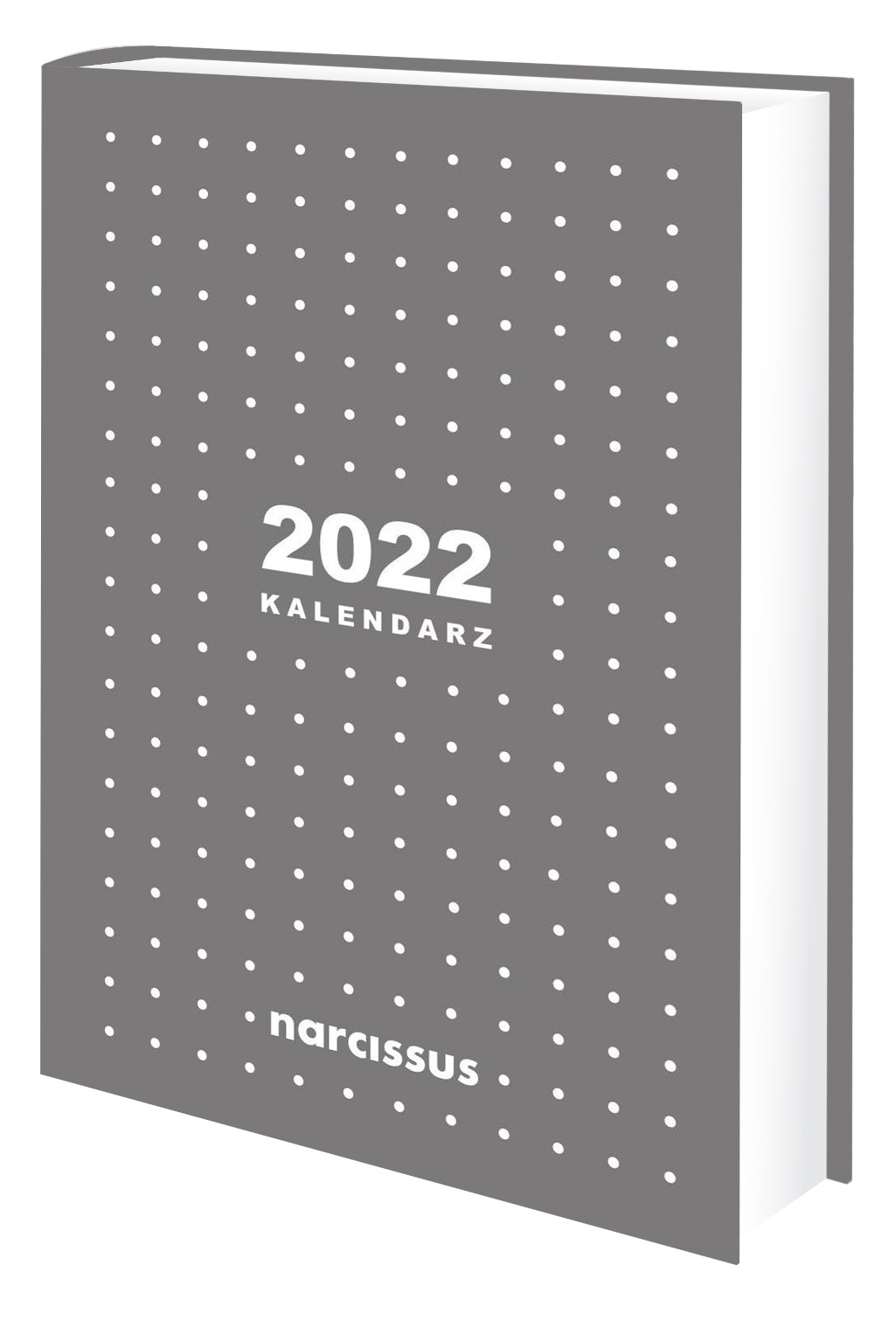 Kalendarz książkowy A5 dzienny 2022 marki Narcissus. Kalendarz posiada szarą, sztywną oprawę, w środku układ dzienny, czyli 1 dzień na stronie, sobota i niedziela razem, plan każdego miesiąca, harmonogram tygodniowy, miejsce na notatki, plany, zadania czy wspomnienia, tasiemkę jako zakładkę. Kartki o gramaturze 80 g/m2 mają zadruk w delikatne szare kropki - idealne do planowania, tworzenia grafik, notatek. 344 strony. Wymiar A5 13x19,5 cm. Kalendarz został wyprodukowany w Polsce.