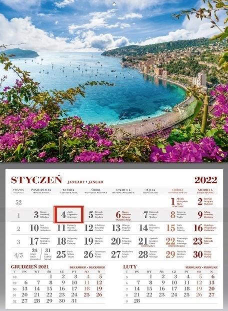 Kalendarz 2022 Ścienny Jednodzieny Lazurowe Wyb.