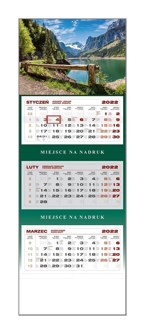 Kalendarz 2022 ścienny trójdzielny Górskie jezioro