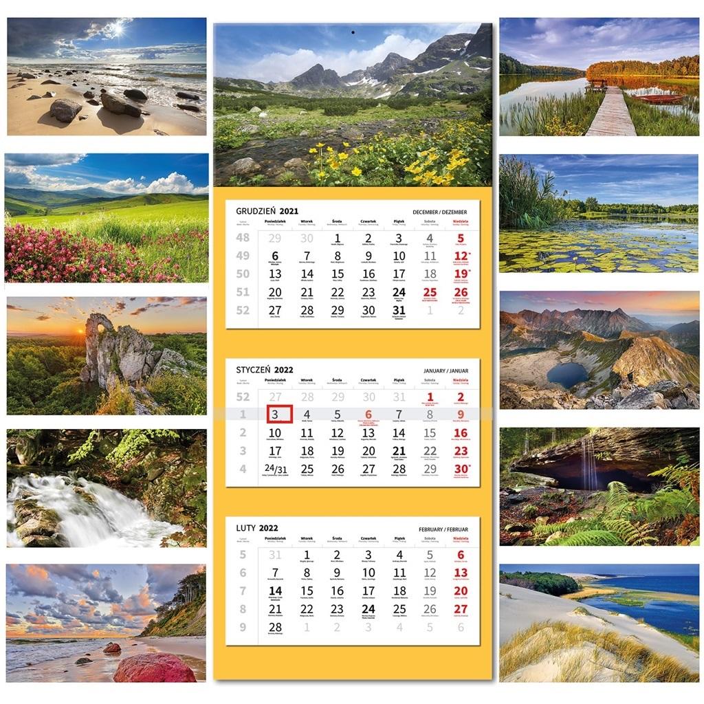 Kalendarz ścienny 2022, trójdzielny, mix wzorów