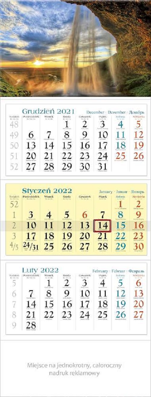 Kalendarz 2022 Trójdzielny Wodospad KT6