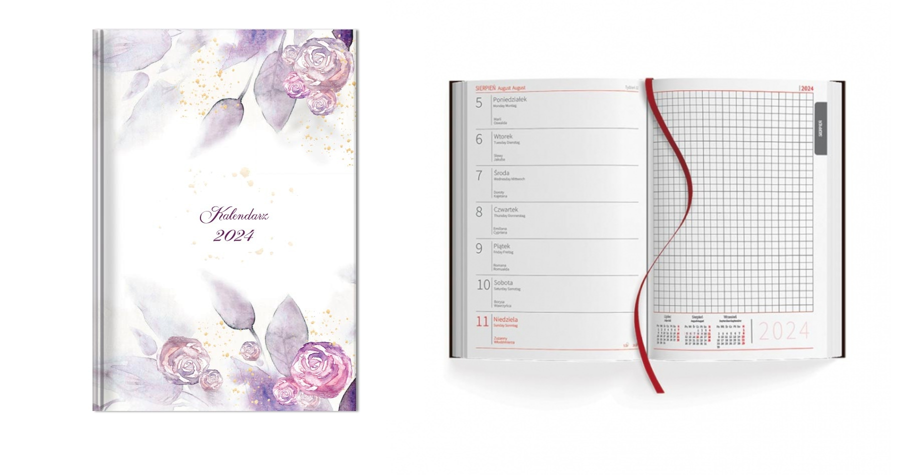 -Kalendarium: w języku polskim, angielskim, niemieckim, numeracja tygodni, podwójne imieniny