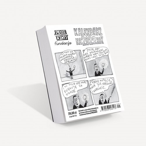 365 zachodów słońca, 365 inspiracji, 365 okazji do świętowania i tyle samo ciekawostek. Do tego rysunki Marka Raczkowskiego, Joanny Grochockiej i Igora Kubika, a także Wycinki w termosie. Zachęcamy do spędzenia każdego dnia 2022 r. w towarzystwie „Przekrojowego” kalendarza zrywusa. Z nami po prostu jest lżej! Kalendarz zawiera 365 kart na cały rok 2022, został wydrukowany na papierze niepowlekanym o gramaturze 60 g/m2, powierzchnia matowa, nadruk dwustronny. Ma otwór umożliwiający jego zawieszenie oraz podstawkę ułatwiającą postawienie go na biurku. Dochód ze sprzedaży kalendarza przeznaczamy na działalność statutową Fundacji PRZEKRÓJ