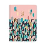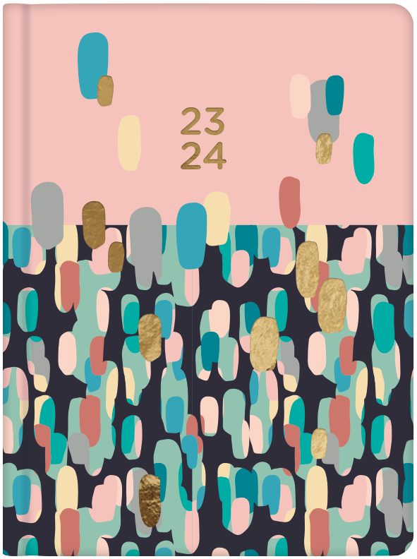 kalendarz książkowy 2023/2024, 18 miesięcy: lipiec 2023 - grudzień 2024, format: B6, wymiary: 12,5 x 17 x 1,5 cm, układ: tygodniowy, wewnątrz: wstążka, plan roku 2022, notatnik, adresownik, linijka, kalendarium dodatkowe na 2022-2023, gramatura: 120 g/m2, oprawa: twarda, gąbkowana