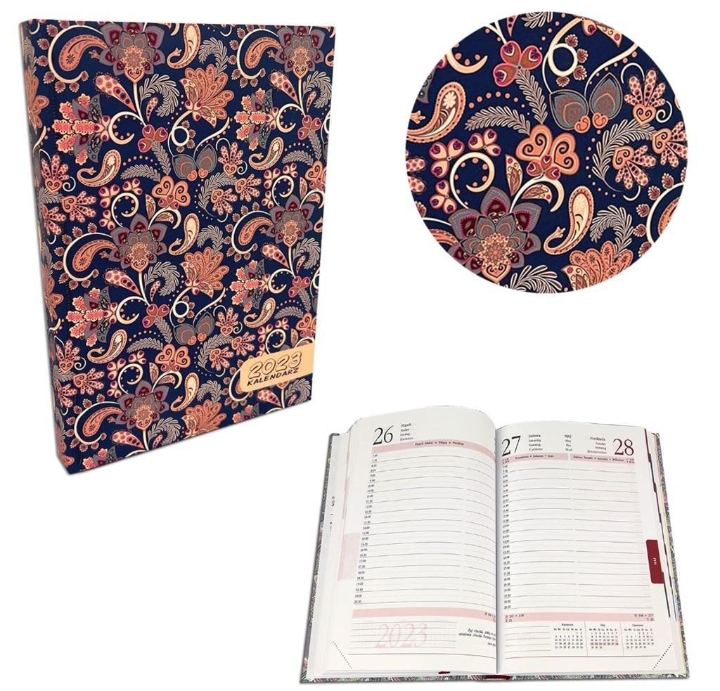 * kalendarz można zakupić w zestawie z etui/piórnikami, teczkami płaskimi na gumkę lub notesami z poddrukiem na każdej stronie w takich samych wzorach