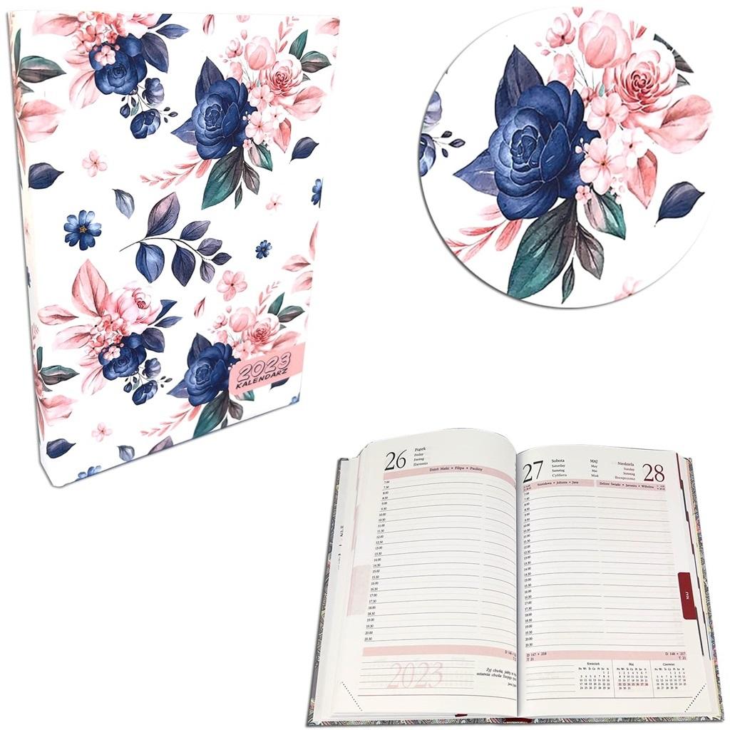 Kalendarz 2023 A5 dzienny soft touch Róże blue