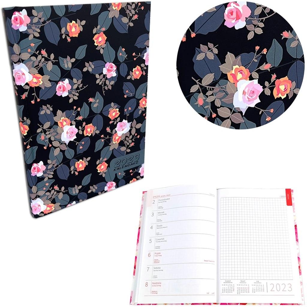 Kalendarz 2023 A5 tygodniowy soft touch róże black