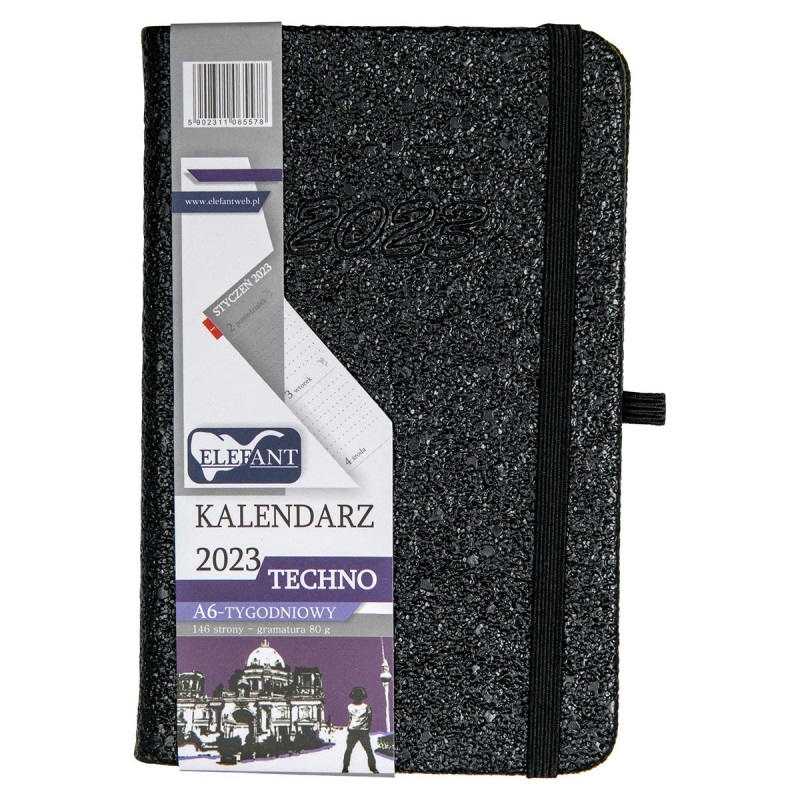 Opakowanie Kalendarz 2023 A6 tyg. Techno czarny ELEFANT