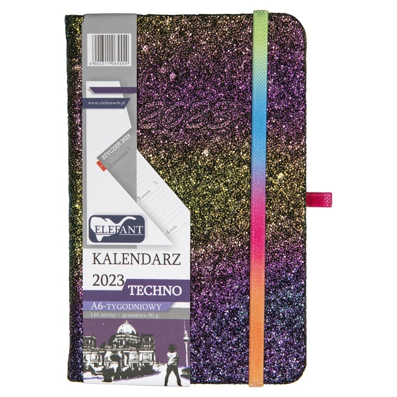 Opakowanie Kalendarz 2023 A6 tyg. Techno kolorowy ELEFANT