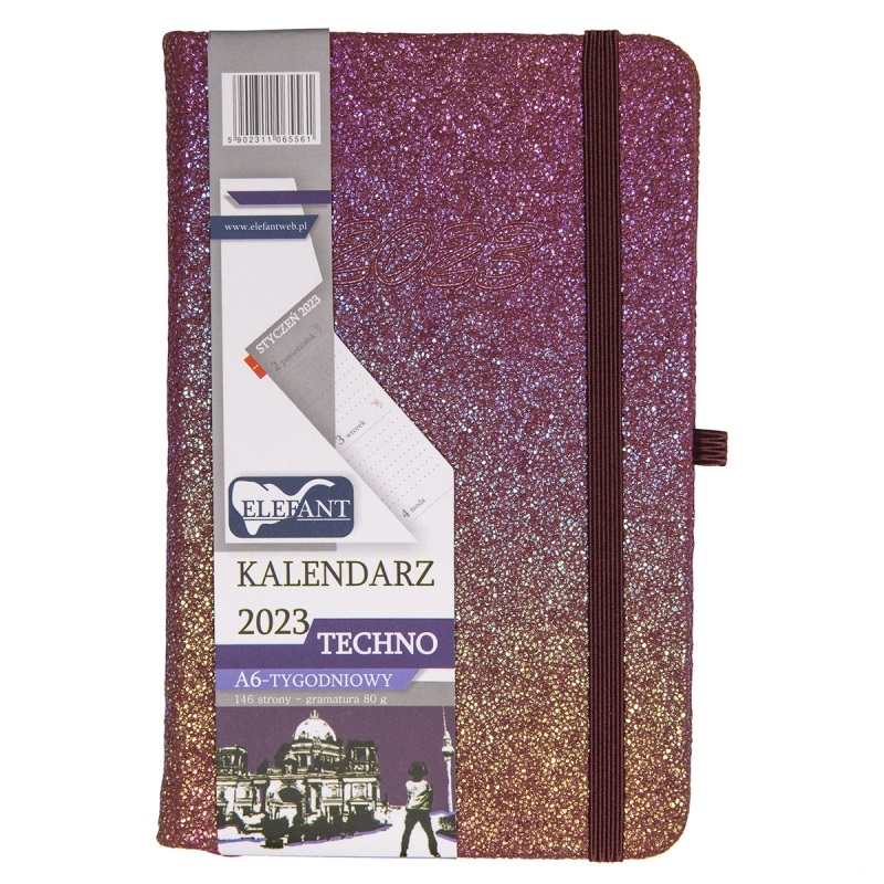 Opakowanie Kalendarz 2023 A6 tyg. Techno różowy ELEFANT