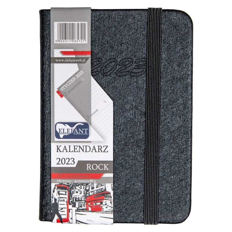 Kalendarz 2023 A7 tyg. Rock grafitowy ELEFANT