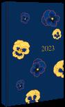 Książkowy kalendarz na rok 2023 z motywem bratków Stanisława Wyspiańskiego na okładce, zaprojektowany przez Aleksandrę Samołyk.