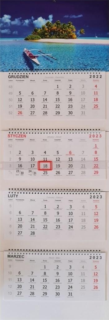 • kalendarium wyraźne i czytelne z dużymi cyframi, posiada miejsce do notowania