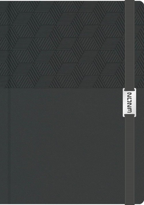 Kalendarz 2023 książkowy A5 Edica z tasiemką, grafitową gumką okalającą z metalowym, srebrnym datownikiem oraz kieszonką prostokątną 10x6cm. Dzień na jednej stronie. Oprawa twarda, piankowana z grafitową okładką. Okładka tłoczona w geometryczne wzory. Papier biały FSC o gramaturze 70g/m2.