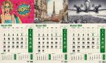 KTJ EKO – Kalendarz Jednodzielny EKO (drukowany na ekologicznym papierze typu Kraft; 3 miesiące na 1 stronie), format 310x480 mm, główka płaska. KTJ EKO pasuje wszędzie tam, gdzie na trójdzielny brakuje miejsca, a zależy nam na podglądzie poprzedniego i następnego miesiąca. Kalendaria zawierają oznaczenia miesięcy i dni tygodnia w trzech językach (PL, EN, DE) oraz imieniny i typowe święta. Mix wzorów - wysyłane losowo