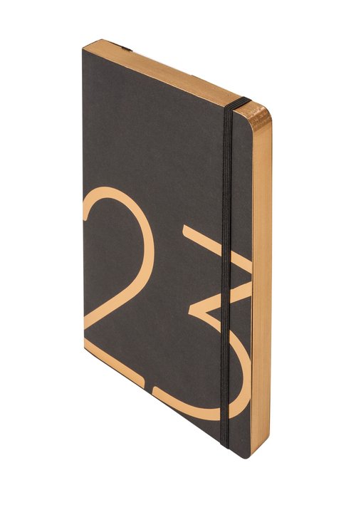 • Kolekcja: Kraft • Format: A5 • Wymiary okładki: 207x141 mm • Układ: dzień na stronie • Ilość stron: 352 • Oprawa: miękka • Materiał: papier • Gramatura papieru: 80g • Kolor papieru: chamoise • Dodatki: plan roku 2023, ważne wydarzenia, skorowidz adresowy, notatki • Pionowa gumka zamykająca: czarna • Wstążka: czarna • Gumka na długopis: nie • Zaokrąglone rogi: tak • Wyklejka: czarna • Koperta: nie