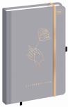 Matowa okładka z efektownym nadrukiem. W środku kolorowa wyklejka. Twarda oprawa skutecznie chroni zawartość przed zniszczeniem. Elastyczna gumka chroni luźne notatki przed wypadnięciem.