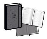Matowa okładka z efektownym nadrukiem UV. W środku kolorowa wyklejka. Twarda oprawa skutecznie chroni zawartość przed zniszczeniem. Elastyczna gumka chroni luźne notatki przed wypadnięciem.