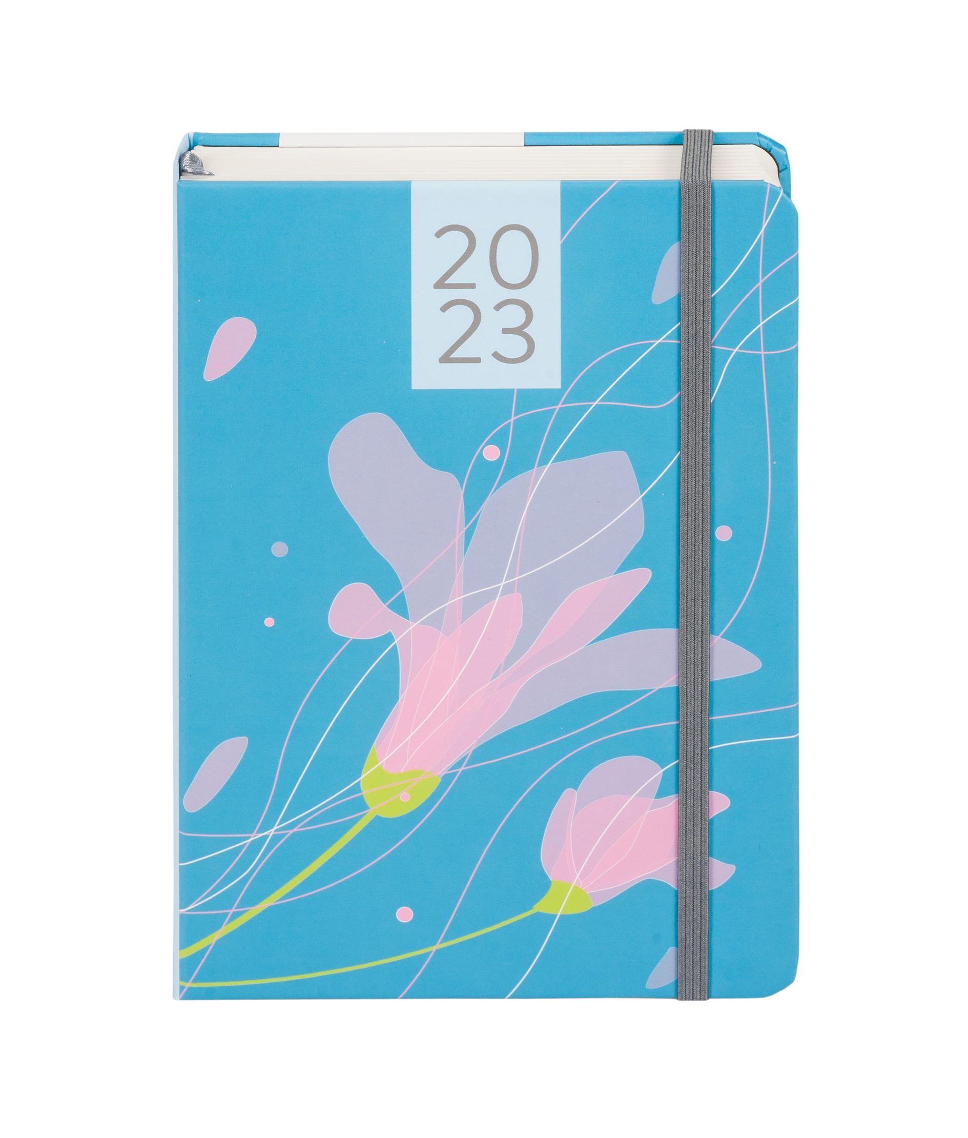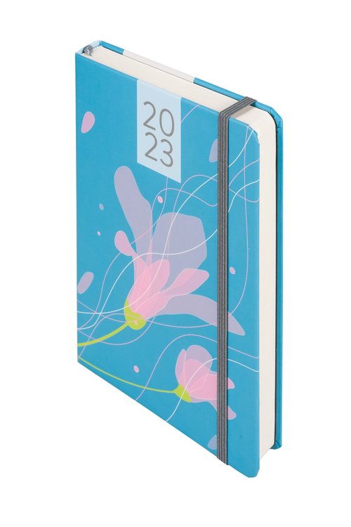 • Kolekcja: Kwiat • Format: B6 • Wymiary okładki: 176x125 mm • Układ: dzień na stronie • Ilość stron: 352 • Oprawa: twarda • Materiał: papier • Gramatura papieru: 80g • Kolor papieru: chamoise • Dodatki: plan roku 2023, ważne wydarzenia, skorowidz adresowy, notatki • Pionowa gumka zamykająca: szara • Wstążka: szara • Gumka na długopis: nie • Zaokrąglone rogi: tak • Wyklejka: czarna • Koperta: nie