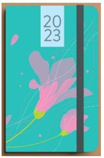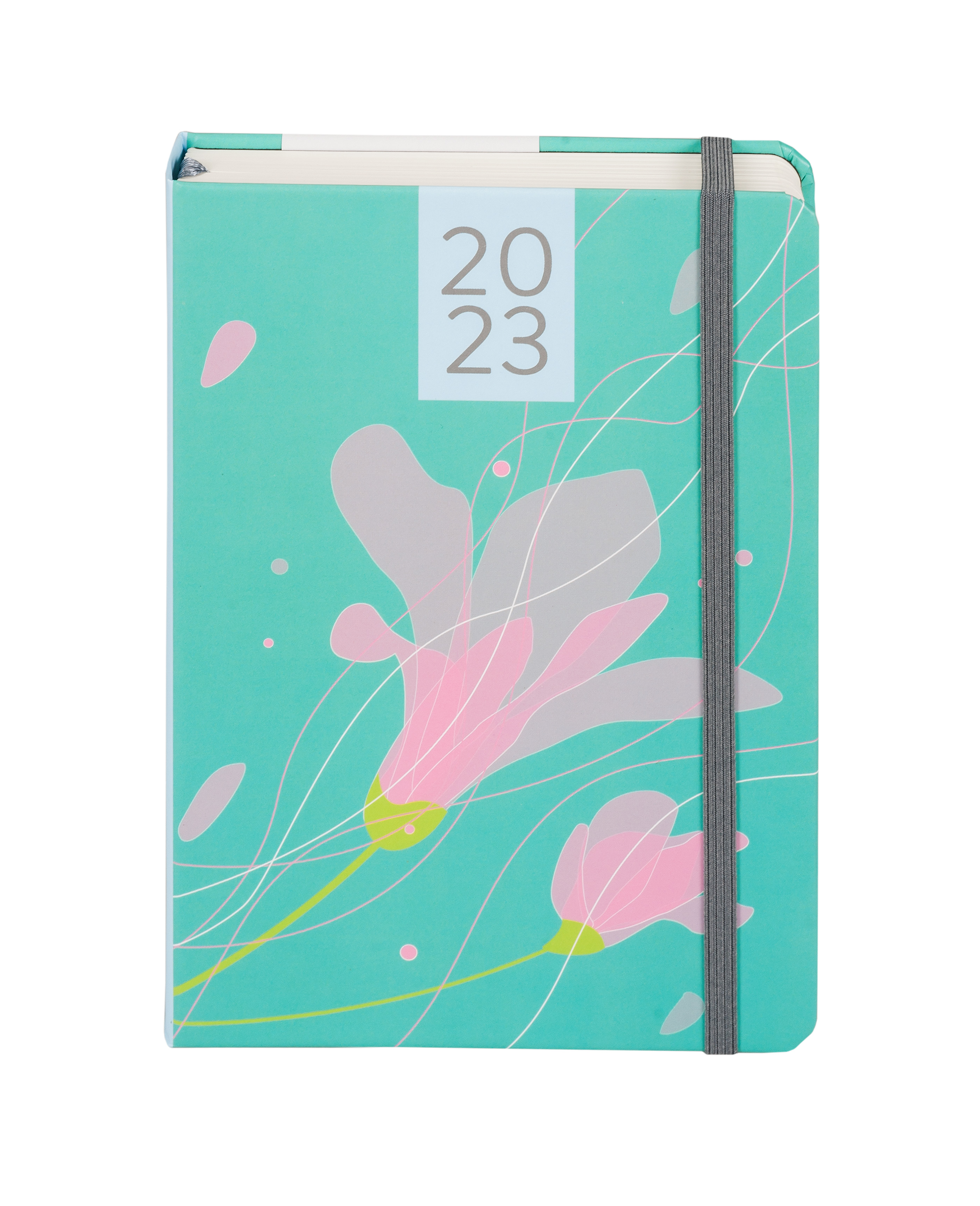 • Kolekcja: Kwiat • Format: B6 • Wymiary okładki: 176x125 mm • Układ: dzień na stronie • Ilość stron: 352 • Oprawa: twarda • Materiał: papier • Gramatura papieru: 80g • Kolor papieru: chamoise • Dodatki: plan roku 2023, ważne wydarzenia, skorowidz adresowy, notatki • Pionowa gumka zamykająca: szara • Wstążka: szara • Gumka na długopis: nie • Zaokrąglone rogi: tak • Wyklejka: czarna • Koperta: nie