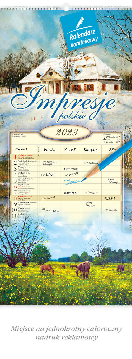 kalendarz ścienny, 13-planszowy, z możliwością zrywania lub