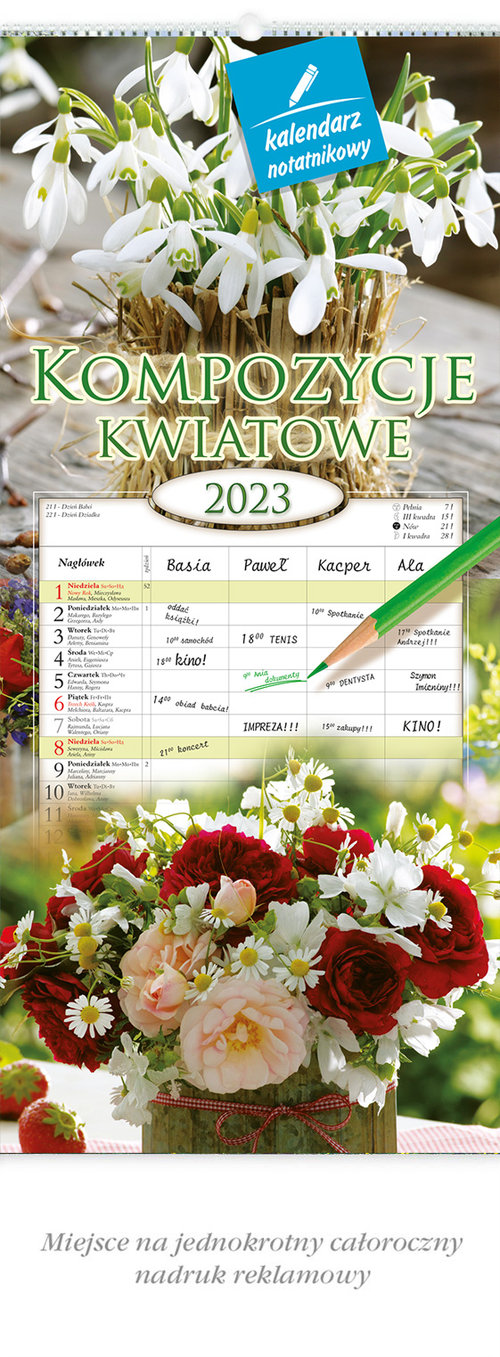 kalendarz ścienny, 13-planszowy, z możliwością zrywania lub
