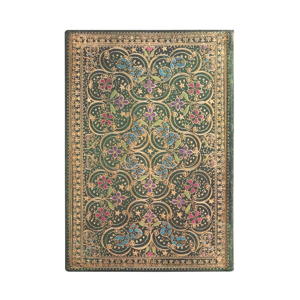 Kalendarz 18-miesięczny (lipiec 2022-grudzień 2023) ekskluzywnej marki Paperblanks. Format Midi typu Horizontal - rozplanowany cały tydzień na 2 stronach. Elastyczna oprawa i grzbiet. Kalendarium w języku angielskim. W środku miejsce na notatki, roczny planer, oznaczone wybrane święta międzynarodowe, mini kalendarium, międzynarodowe numery telefonów, strefy czasowe, dodatkowe informacje, mini skorowidz na adresy i telefony. Kalendarz posiada 2 satynowe wstążki jako zakładki. Na końcu na wewnętrznej stronie okładki jest koperta na drobne notatki czy paragony. Papier ekologiczny, bezkwasowy, gramatura 80. Kalendarz zamykany na gumkę. Wymiary 125x175 mm, 208 stron. Wzór Pinnacle inspirowany jest pochodzącą z 1675 roku oprawą książki "The Government of the Tongue" Richarda Allestree. Równowaga otwartej przestrzeni i skomplikowanych elementów sprawia, że jest lśniącym klejnotem tamtego okresu.