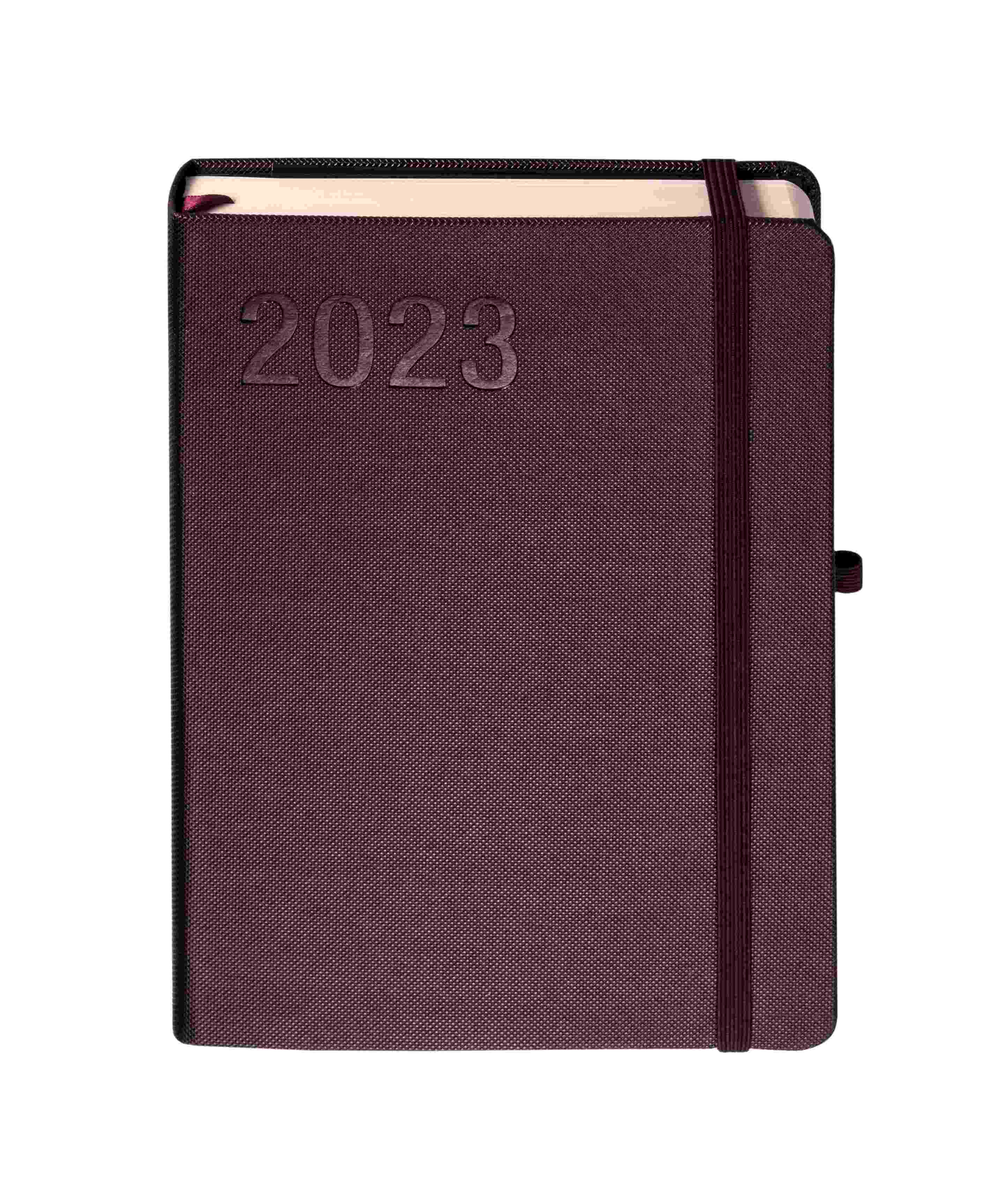 • Kolekcja: Rubi • Format: A5 • Wymiary okładki: 210x145 mm • Układ: dzień na stronie • Ilość stron: 352 • Oprawa: twarda • Materiał: skóra ekologiczna, z fakturą • Gramatura papieru: 80g • Kolor papieru: off white • Dodatki: plan roku 2023, ważne wydarzenia, plan miesiąca, skorowidz adresowy, notatki • Pionowa gumka zamykająca: w kolorze okładki • Wstążka: w kolorze okładki • Gumka na długopis: w kolorze okładki • Zaokrąglone rogi: tak • Wyklejka: czarna • Koperta: tak