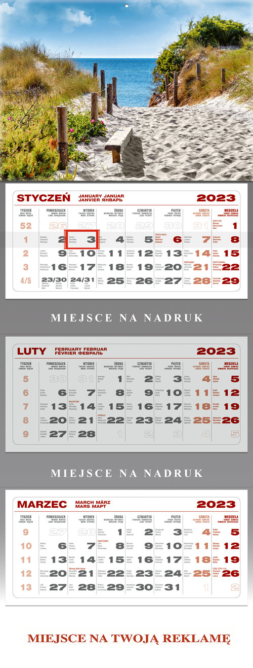 Opakowanie Kalendarz 2023 ścienny trójdzielny Morze