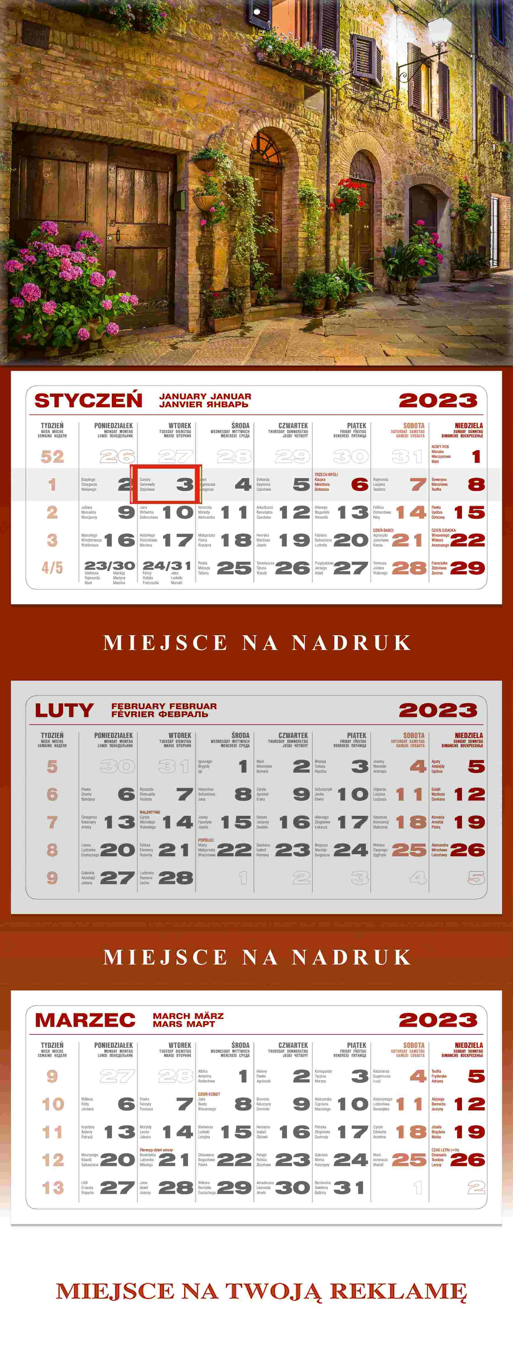 Kalendarz 2023 ścienny trójdzielny Toskania